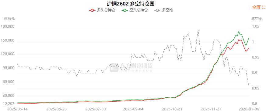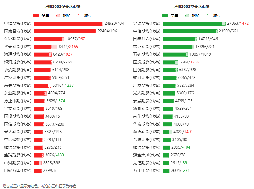 总体而言,沪铜2602合约今日增仓上行,多空持仓排名前20席中,多空双方均呈进场态势,多头进场意愿弱于空头。