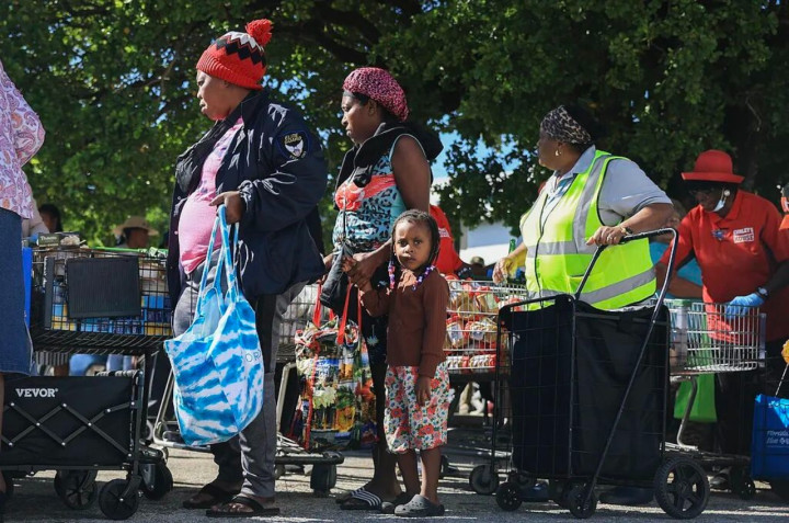 美国民众排队领取食品银行发放的食品。图源央视新闻