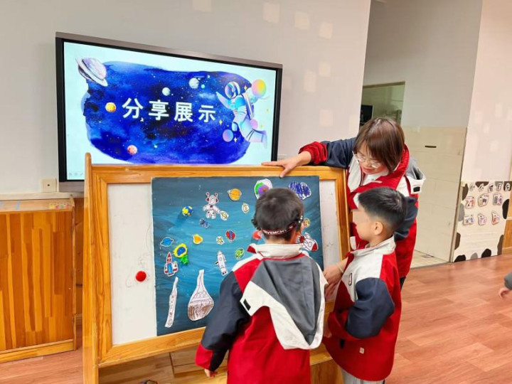 望城区教育局直属幼儿园的融合小组课《快乐星球》教学现场。