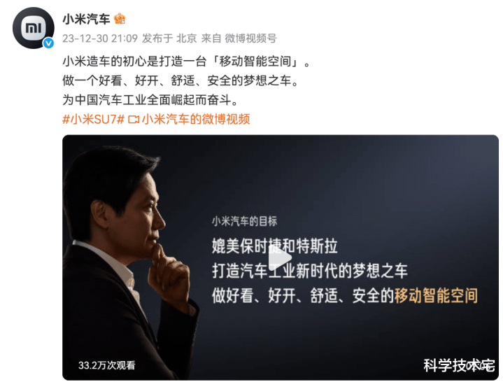 在2023年年底,小米召开了一场小米汽车技术发布会金多多,这次发布会并没有发布小米SU7,而是发布了汽车相关的技术;在这次发布会上金多多,小米创始人雷军提出了小米造车的初心。